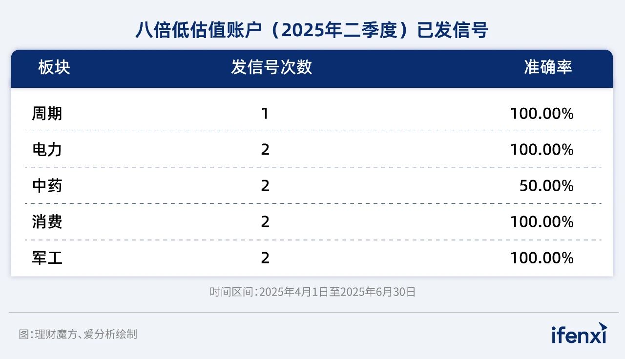 图:理财魔方八倍低估值账户2025年第二季度已发投资信号准确率