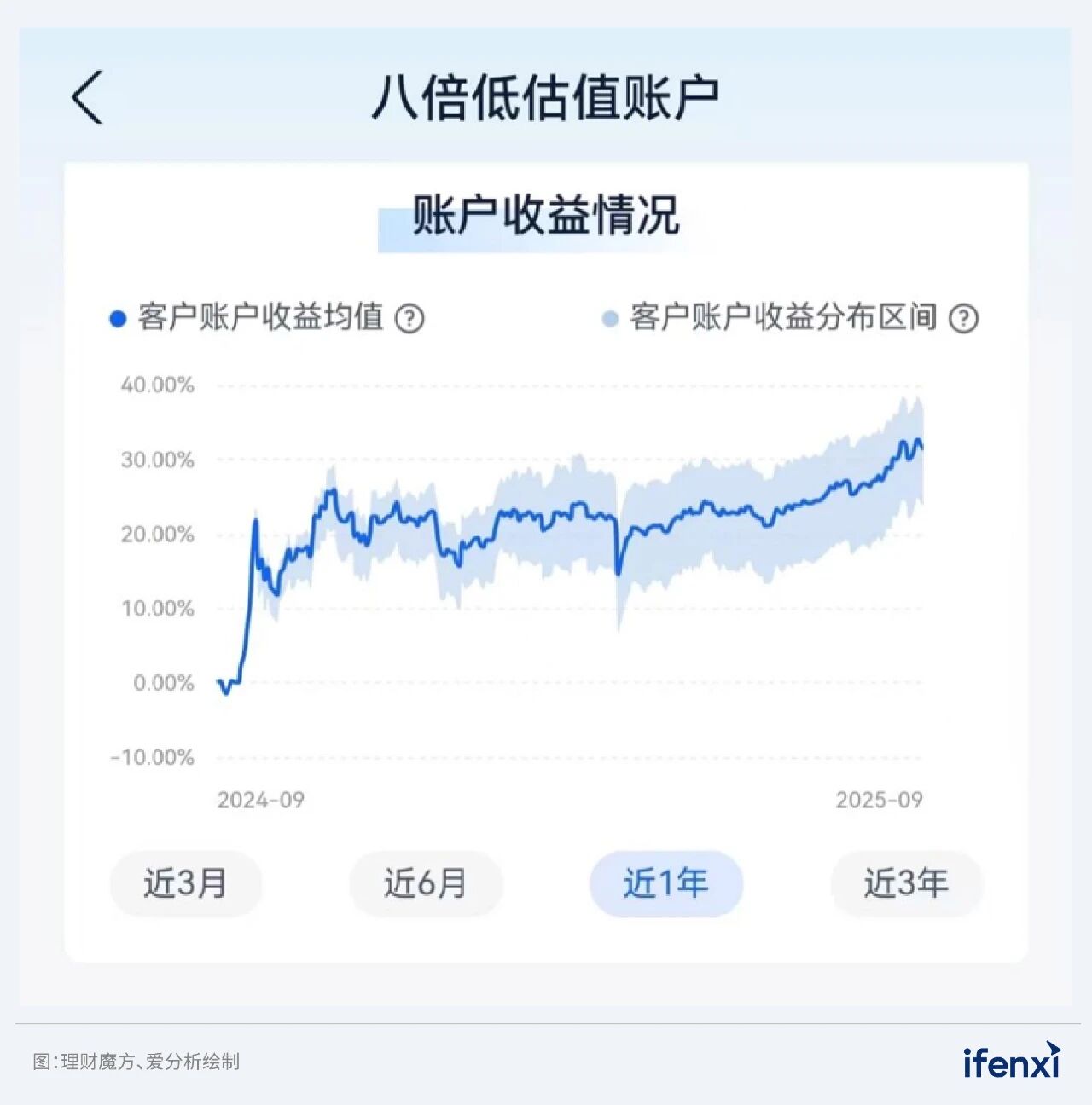 图:理财魔方八倍低估值账户持仓客户的账户收益分布区间