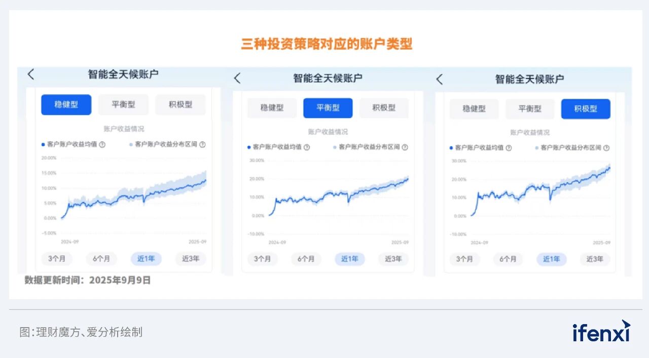 图:理财魔方智能全天候账户-三种投资策略对应的账户类型